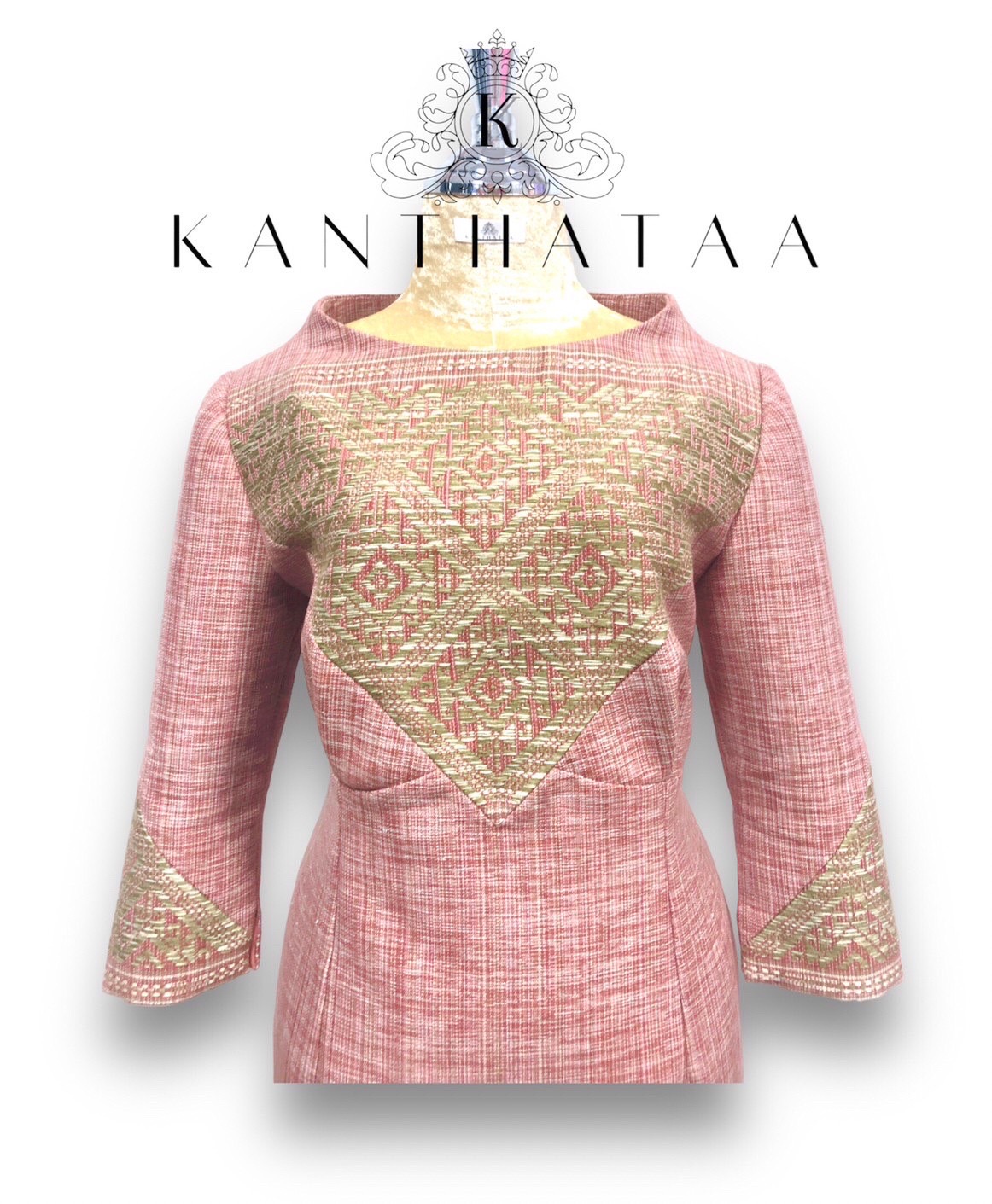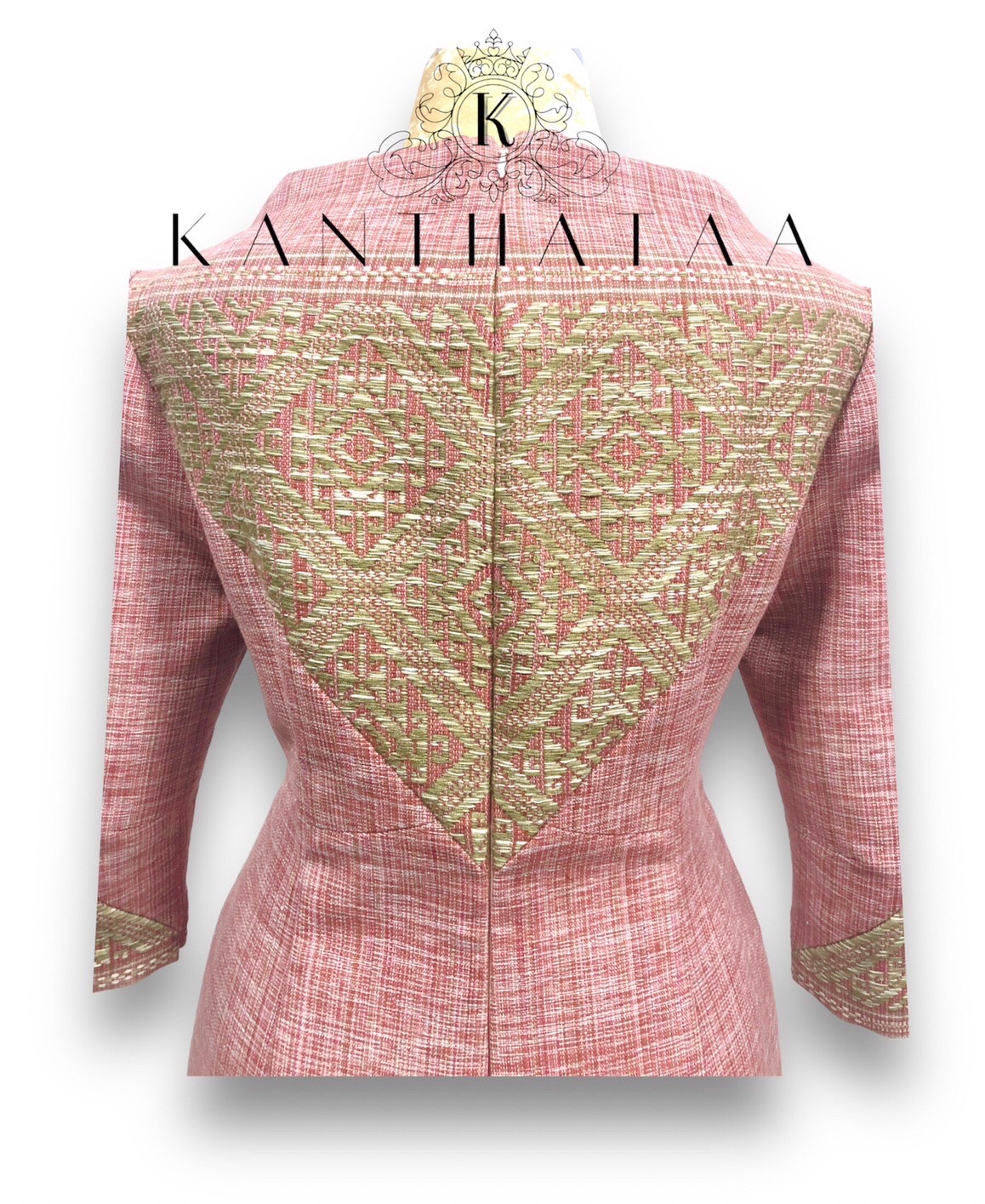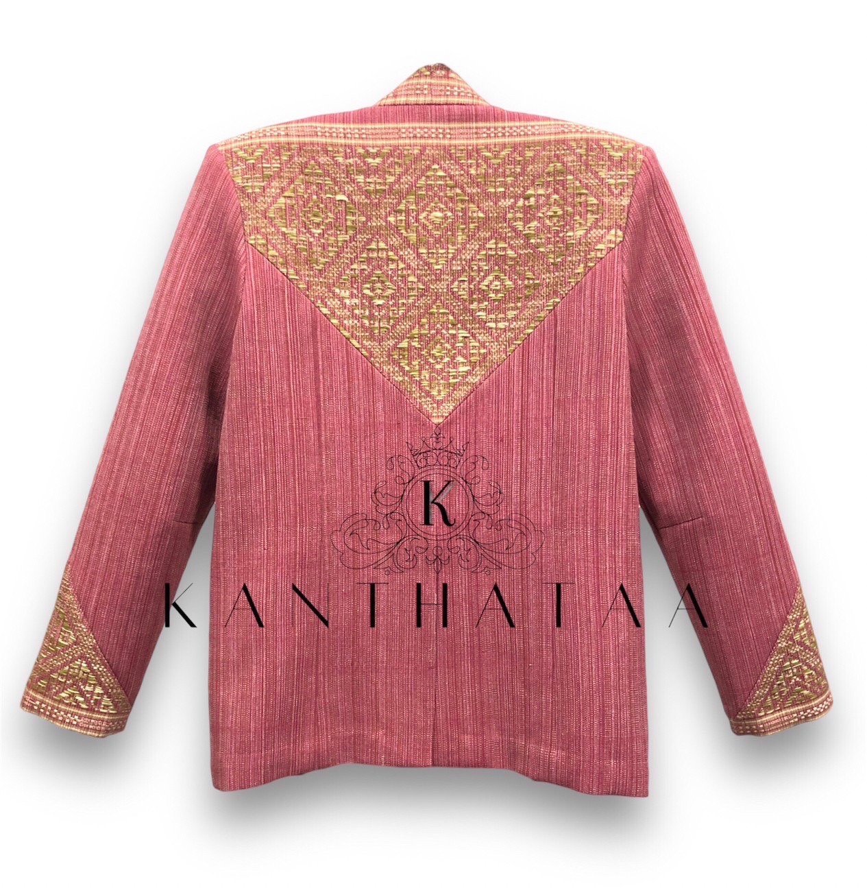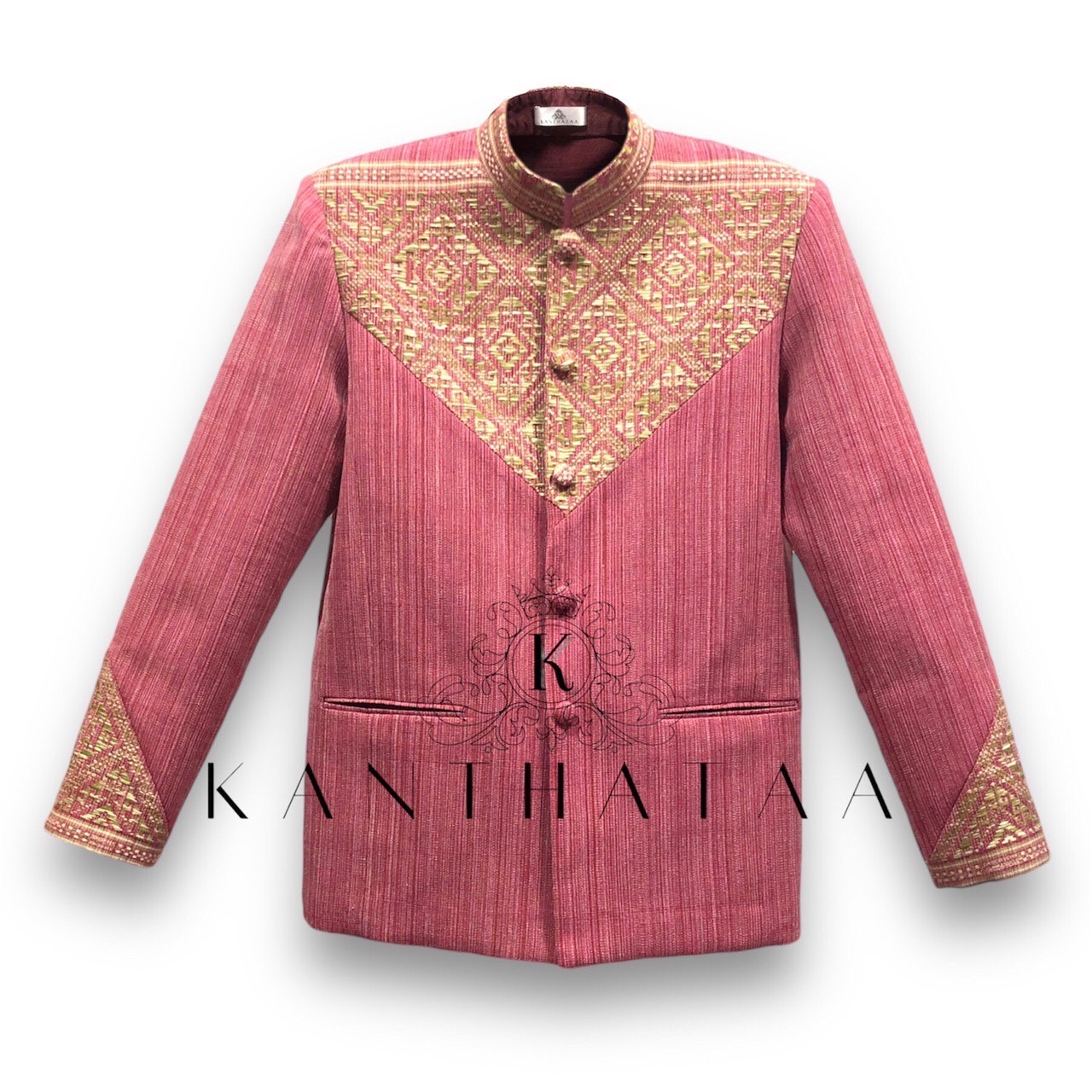 It is a shirt that is woven from the end of the spool left over from the weaving process, and it cannot be utilized in weaving into a large, full piece of cloth. Therefore, there are many threads at the end of the spool when bringing the remaining yarn from weaving to be a line again and used as a warp line in weaving. Along with the weaving pattern "Kho Kha Jae Tai Lue," or Thai Lue padlock pattern, and bed sheet pattern. This is the weaving wisdom of the Tai Lue people that has been handed down from generation to generation by reusing the pattern by reversing the pattern back and forth in new patterns that are beautiful and strange, adding more charm to the woven fabric, In addition, the color used to dye the plain fabric and yarn, it is also the color of natural materials such as lac color and color from Khamsaed seed, padauk bark and eucalyptus leaves.