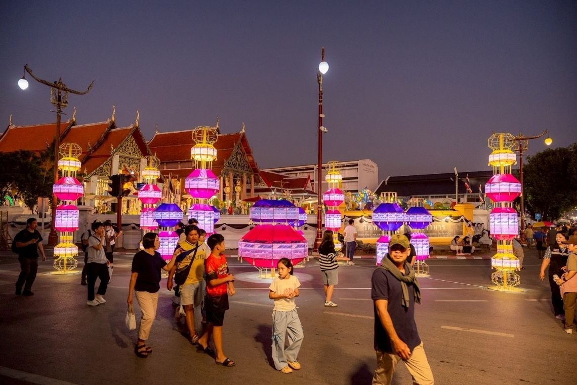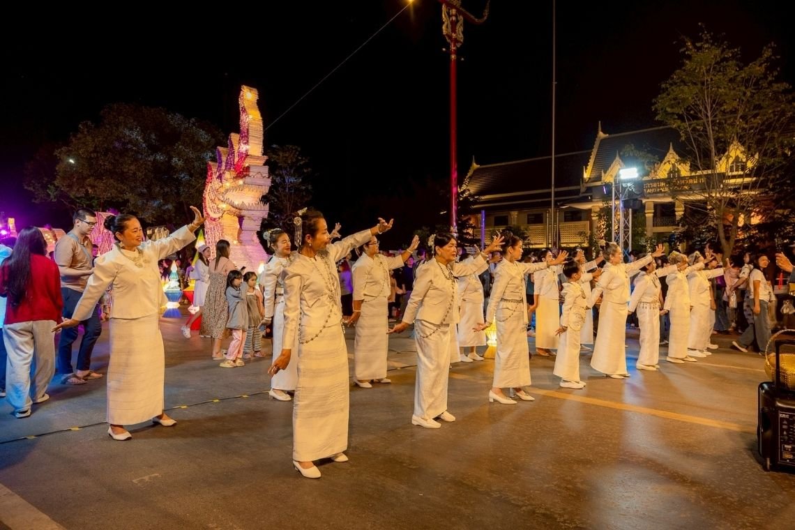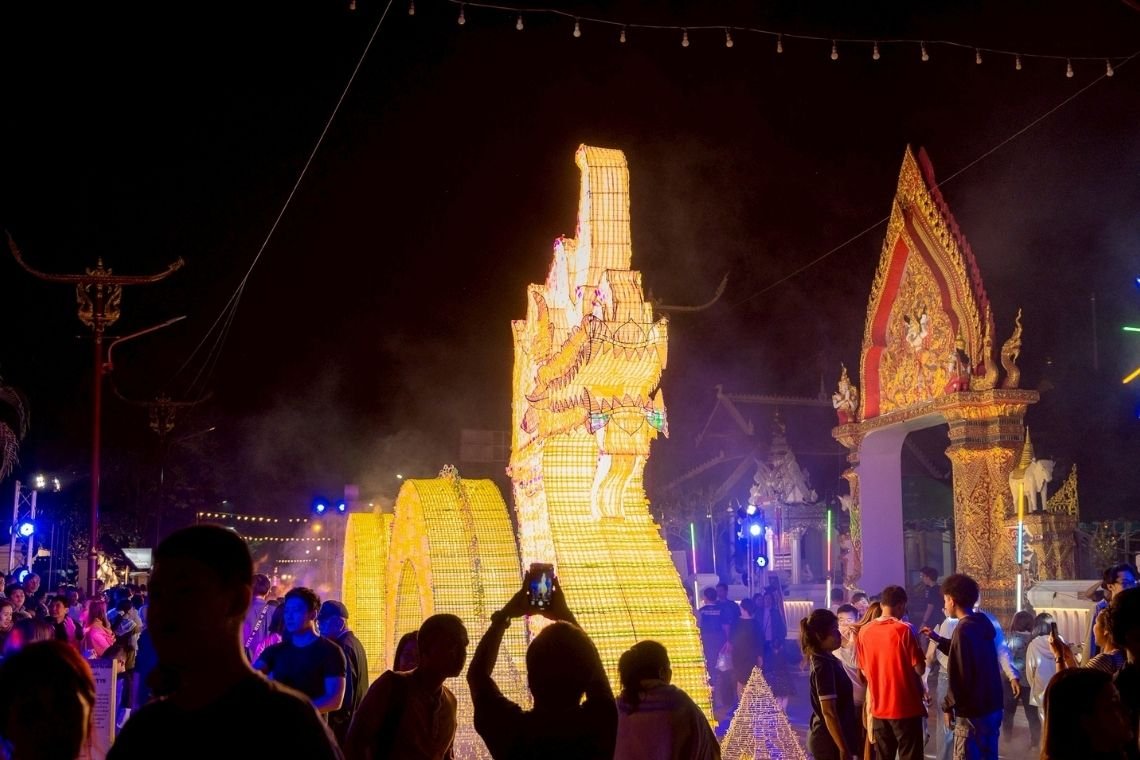 Suriyapong Road was transformed into the “Road of Faith,” stretching over 888 meters and acting as a “giant handkerchief” that embraced the entire city. Amidst the brilliant lights stood the “8 Nan Naga”—eight guardian Naga lanterns that are far more than symbols of belief. They are masterpieces distilled from the souls of Nan’s people across all 15 districts, who united to craft them as beacons of encouragement and blessings for every visitor.