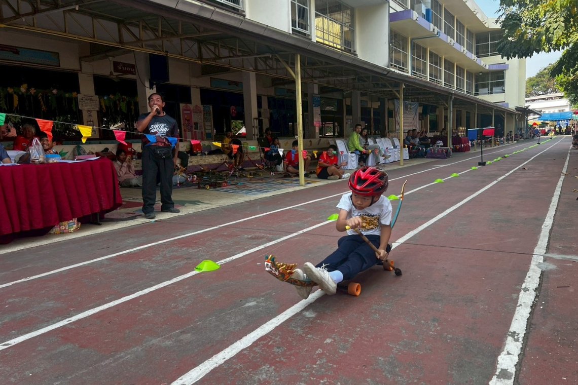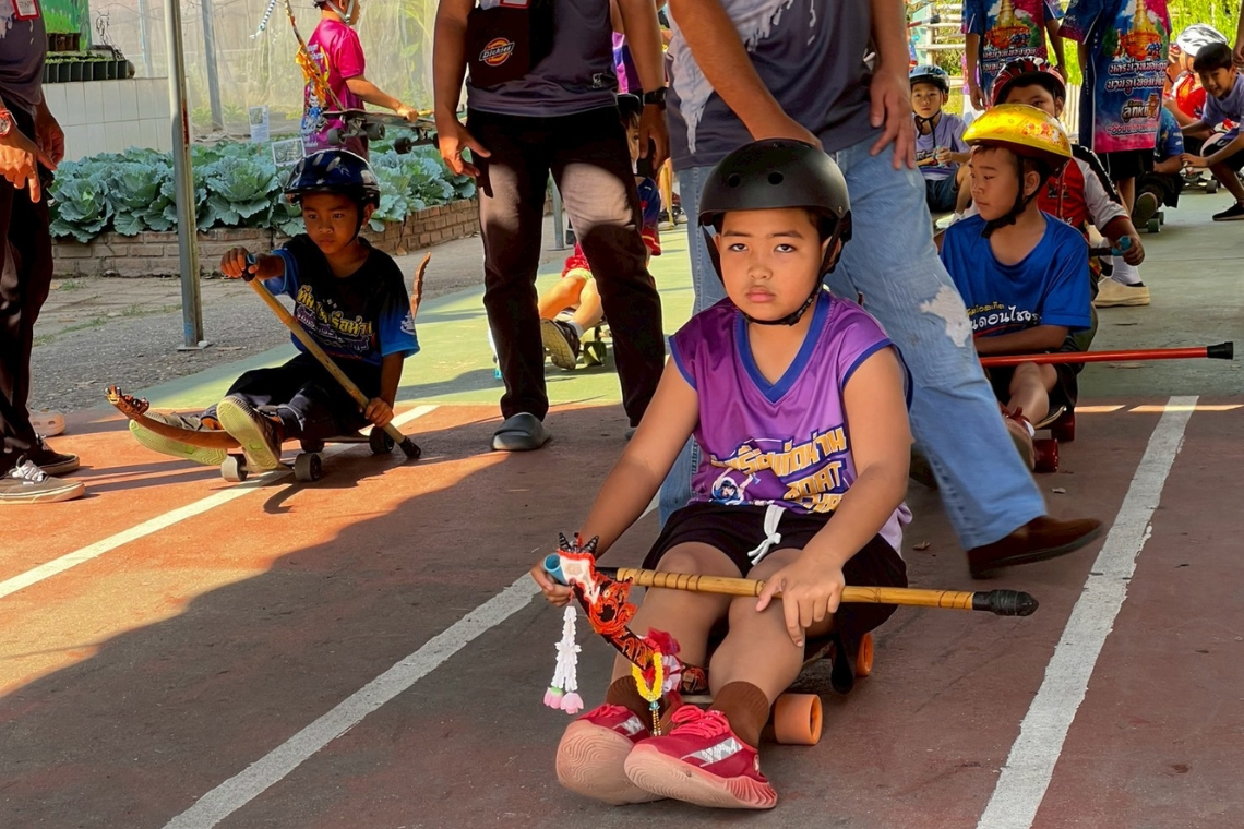Perhaps that’s why the commentary arrives before the wheels are heard because the narrative of their home is already underway before the kids even drive away. And if you’d like to attend the next race, follow updates and event details on Facebook at “สมาคมสเก็ตเรือน่าน”(Nan Skate Boat Association)