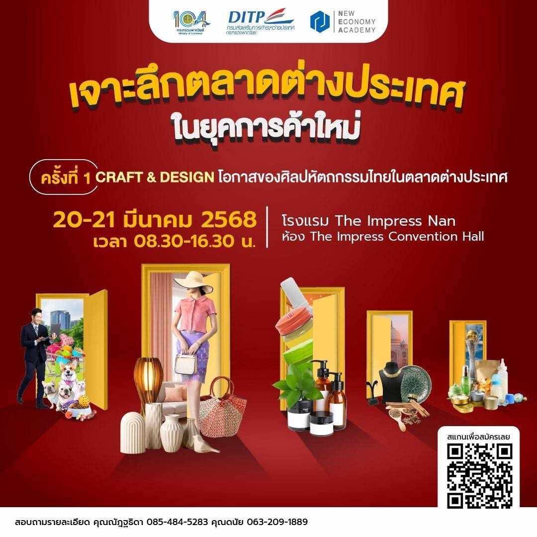 มุ่งสู่ตลาดสากลด้วยงานหัตถศิลป์ไทย โครงการนี้จัดขึ้นเพื่อส่งเสริมและพัฒนาศักยภาพผู้ประกอบการไทยในด้านงานหัตถศิลป์ ให้สามารถก้าวสู่ตลาดต่างประเทศได้อย่างมั่นใจ ด้วยการอบรมเข้มข้นจากผู้เชี่ยวชาญในแวดวง Craft & Design ที่จะมาถ่ายทอดความรู้และประสบการณ์แบบไม่มีกั๊ก