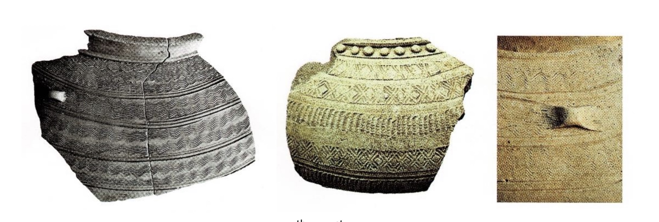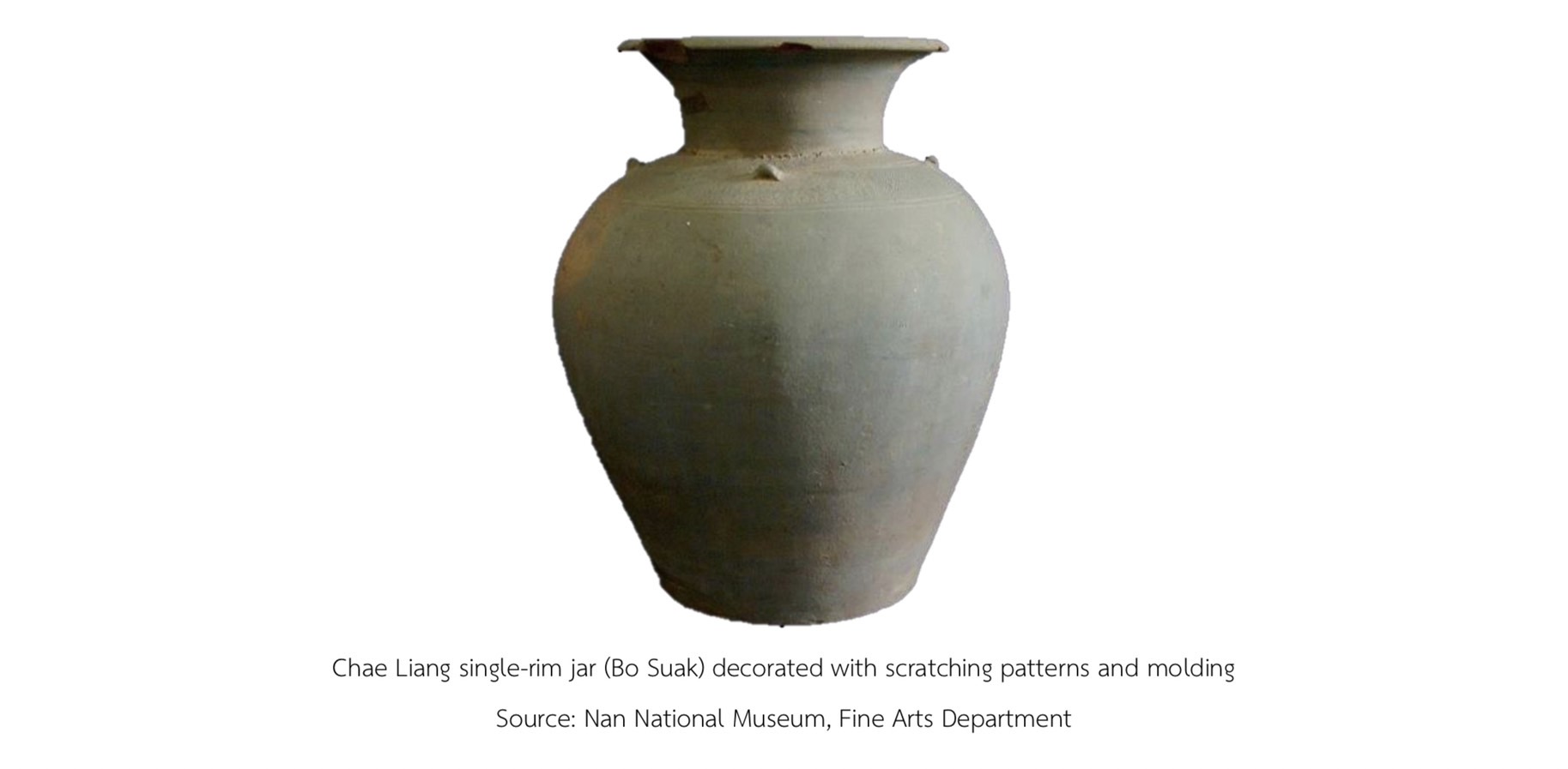 ไหปากชั้นเดียวแหล่งเตาไหแช่เลียง (บ่อสวก) ตกแต่งด้วยลวดลายขูนขีดและปั้นแปะ