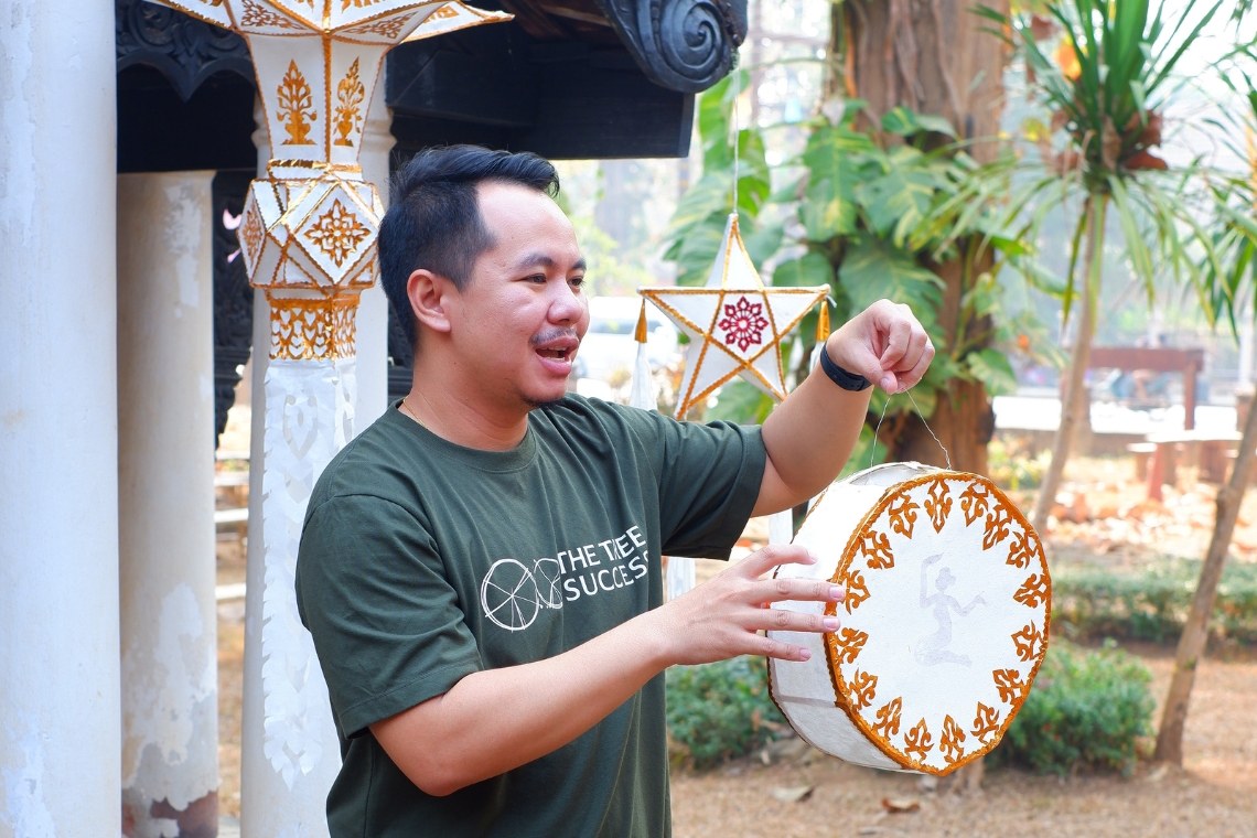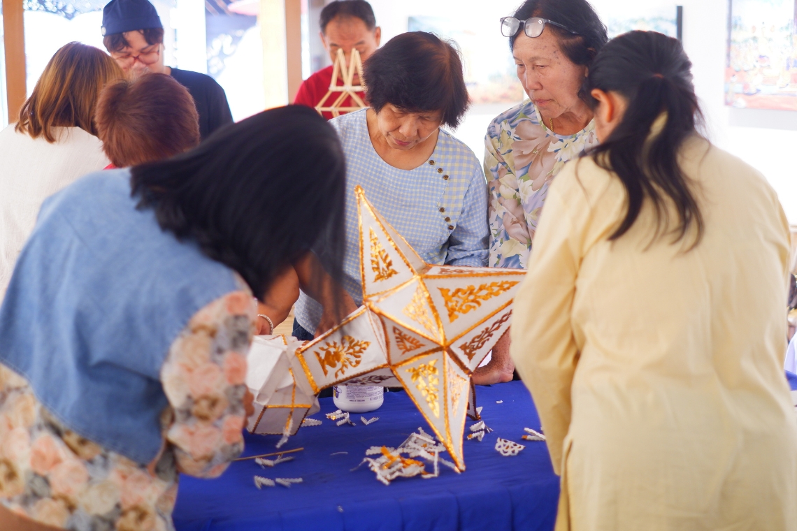 Ajarn Kritdanai Sombatmai, a master of Lanna handicrafts, acted as the conductor of this symphony. He shared his knowledge, techniques, and meticulousness in Lanna lantern making with the new generation of artists, passing on his long-accumulated experience and wisdom like melodious notes played to the audience.