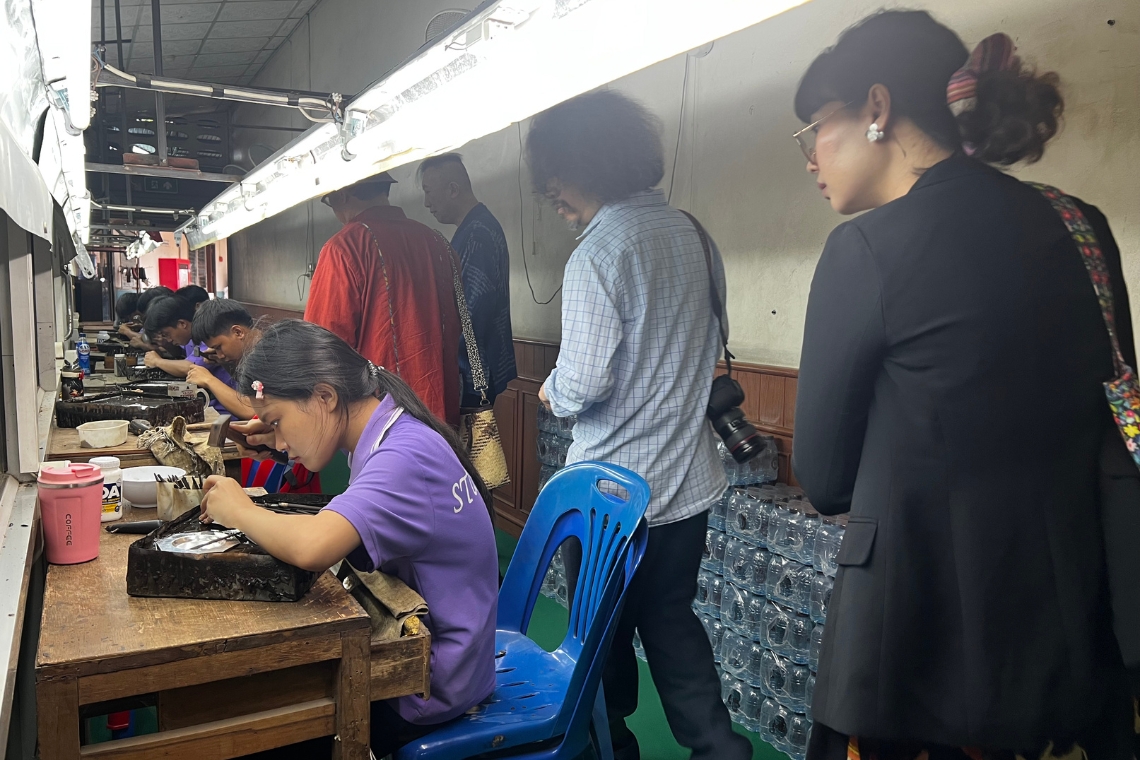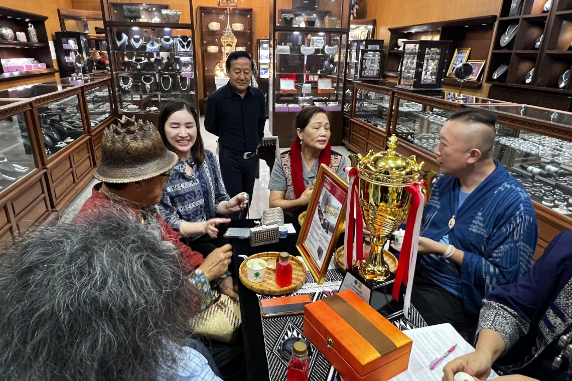 นอกจากดอยซิลเวอร์แล้ว คณะฯ ยังได้เยี่ยมชม บันเทิงเครื่องเงิน ซึ่งเป็นอีกหนึ่งแหล่งผลิตเครื่องเงินที่มีชื่อเสียงและเป็นที่ยอมรับในท้องถิ่น การเยี่ยมชมครั้งนี้ทำให้คณะผู้ประเมินได้สัมผัสกับกระบวนการผลิตอันประณีตงดงาม ได้พูดคุยกับช่างฝีมือผู้มากประสบการณ์ และเห็นถึงความมุ่งมั่นในการสืบทอดภูมิปัญญาจากรุ่นสู่รุ่น เครื่องเงินของน่าน ไม่ได้เป็นเพียงเครื่องประดับ แต่ยังเป็นตัวแทนของเรื่องเล่า วิถีชีวิต และจิตวิญญาณของคนน่าน