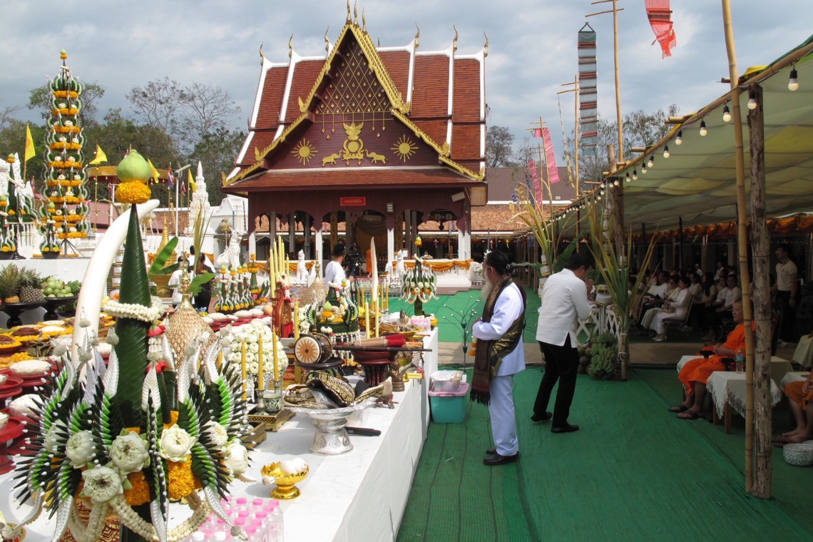 ในเช้าวันที่ 25 กุมภาพันธ์ 2569 เหนือลานมณฑลพิธีพระมหาธาตุเจ้าภูเพียงแช่แห้ง แสงแดดอ่อน ๆ เริ่มจับที่ยอดฉัตรสีทอง ขณะที่เสียงปี่พาทย์พื้นเมืองบรรเลงแผ่วเบาเพื่อบอกกล่าวเทพยาดาอารักษ์ แต่สิ่งที่ดึงดูดสายตาและบอกเล่าความยิ่งใหญ่ของ "คนน่าน" ได้ดีที่สุดในพิธีบวงสรวงนี้ กลับไม่ใช่เพียงแค่พิธีกรรมที่ศักดิ์สิทธิ์ แต่คือ ‘งานหัตถกรรม’ ที่ถูกปรุงขึ้นอย่างวิจิตรเพื่อถวายเป็นพุทธบูชา